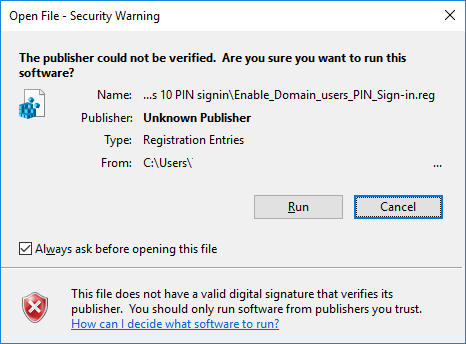 HKEY_LOCAL_MACHINE\SOFTWARE\Policies\Microsoft\Windows\System AllowDomainPINLogon DWORD 0 or (delete) = Disable 1 = Enable