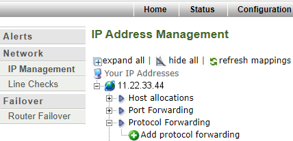 - Navigate to Configuration > IP Management and add any port forwarding rules you require